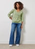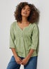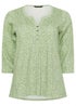 M&Co Green Floral Print 3/4 Sleeve Cotton Henley Top