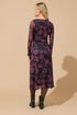 M&Co Petite Berry Purple Floral Mesh Twist Side Dress
