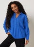 M&Co Petite Blue Pintuck Detail Linen Shirt