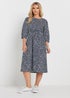 M&Co Petite Navy Blue Spot Print Midi Dress