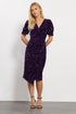 M&Co Petite Purple Sequin Velvet Wrap Dress