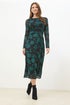 M&Co Teal Green Floral Mesh Twist Side Dress