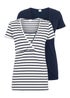 Learn moreComfy casuals are a maternity wardrobe must. This handy nursing t-shirts duo from Mamalicious has been crafted from organic cotton to ensure a soft hand feel and comfortable all-day wear. The set includes a plain navy design, together with a white and navy striped variation. Both of which feature a cross-over front, complete with an internal nursing layer to ensure discreet feeding. This product is made with organic cotton. Organic cotton is grown without the use of harmful chemicals. Organic cotton farming protects natural resources and farmers. _ **At**_ _ ****_ _ **MAMALICIOUS, their motto is 'Live, Care, Love'. Helping expectant mothers LIVE their lives freely during pregnancy by making clothes that are comfortable and stylish and fit her growing body. Providing CARE by having a collection that heavily focuses on using sustainable materials to create a better future for our children. Creating cool, easy-to-wear styles that allow freedom of thought so all the LOVE can go on the baby.**_