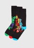 Elevate your everyday essentials with the Marvel 3 Pack Black Socks for men, where comfort meets superhero style. Perfect for fans of the Marvel universe, these socks bring a touch of heroic flair to your wardrobe, making them ideal for work, casual outings, or just relaxing at home. This set includes three pairs of black socks, each featuring subtle yet striking designs inspired by iconic Marvel characters like Spider-Man, Iron Man, and Captain America. The classic black colour pairs easily with any outfit, while the Marvel-themed accents add a fun, personal touch.
