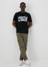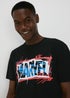 Step into the shadows and let your style command attention with the from our Marvel Black T-Shirt. Dressed in the deepest shade of black, this T-shirt is a sartorial masterpiece that exudes mystery and intrigue. Featuring a bold abstract MARVEL slogan print in red and blue. A classic crewneck design and short sleeves that are perfect for any casual occasion. Pair with your favourite pair of dark-wash jeans, complete with sneakers and a baseball cap.