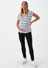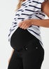 When it comes to rocking the super skinny jean, April is your girl. Designed to flatter your legs without compromising on comfort, these maternity jeans come in black stretch denim with a soft touch, over-bump band to accommodate your growing bump and provide additional coverage. They're finished with a working fly and button fastening, alongside two working back pockets. Model Height: 5ft 9.