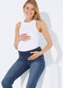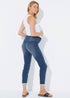 If it's comfortable relaxed skinny jeans that you're looking for, Jolie is your girl. Cut slightly looser through the leg, these dark wash maternity jeans are fashioned in a knitted denim fabric for ultimate comfort. Practical functions include two back pockets and a soft stretch under-bump band. Turn-up hems complete the style.