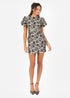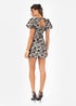 A poised expression of contemporary femininity, this bodycon mini dress is defined by its sculpted silhouette and intricate craftsmanship. Rendered in a textured jacquard weave, the black base is adorned with metallic gold floral designs, some petals subtly raised to create a tactile 3D effect that offers depth and opulence. A round neckline and short puffed sleeves lend a romantic balance to the form-fitting cut, while the reverse reveals an understated, yet alluring keyhole detail fastened with a dainty button and loop. Style with subtle heels and minimalist accessories to let its radiant textures take centre stage.