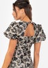 Maya Deluxe Black Floral Jacquard Keyhole Back Mini Dress