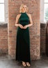 Maya Deluxe Emerald Halter Neck Velvet Maxi Dress