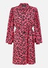 Learn moreFeel pretty in pink this season with this Mela shirt dress. In a bold all over animal print, button up front and long balloon sleeves - This is statement dressing. The shirt collar give this piece a put together feel along with the self tie waist belt.