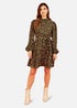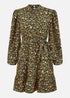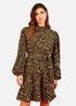 Feeling fierce this season? Look no further than this long sleeve skater dress from Mela. The high neckline, bold all over green animal print and self tie waist belt all makes this dress a perfect option for everyday. Style with a blazer and trainers for smart style every time.