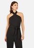 Learn moreMade from a luxurious feeling Black stretch fabric, this Mela Cross Over Halter Neck Jumpsuit looks and feels immaculate. The long wide legs and self tie waist create a stunning silhouette. The crossover halter neckline is chic and fastens in the back with 2 concealed buttons.