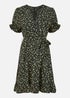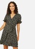 Mela Black Ditsy Print Wrap Dress With Frill Details