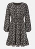 Mela Black Floral Print Ruched Waist Long Sleeve Skater Dress