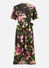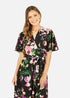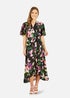 Mela Black Floral Wrap Midi Dress With Frills