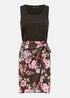 Mela Black Jersey Stretch Top and Woven Floral Skirt Wrap Dress