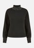 Ditch the jewellery for embellished knitwear! This gorgeous Black number is the perfect everyday jumper for work or weekend. With a high collar filled with a delicate pearl detail, that is matched on the cuffs. This super soft lightweight sweater looks perfect paired with jeans and trainers.