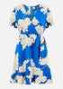 Mela Blue Blossom Print Wrap Dress With Puff Sleeves