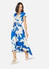 Mela Blue Blossom Print Wrap Midi With Dipped Hem