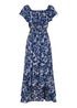 Mela Blue Ditsy Print Bardot Dipped Hem Dress