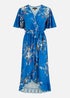 Mela Blue Floral Dip Hem Wrap Midi Dress