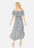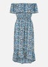 Mela Blue Floral Ditsy Bardot Midi Dress