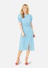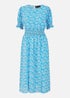 Mela Blue Floral Print Shirred Waist Midi Dress