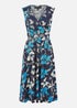 Mela Blue Floral Print Stretch Wrap Over Midi Dress With Pockets