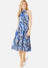 Mela Blue Paisley Floral Halter Neck Midi Dress