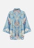 Learn moreFlared kimono sleeves give this Mela Blue Satin Chain Print Kimono it’s signature look. The open front and dropped shoulders create an elegantly balanced shape that is both relaxed and casual. A colourful chain print runs through the lightweight satin fabric, lending a bold edge to your wardrobe.