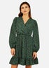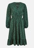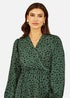Mela Dalmatian Print Long Sleeve Wrap Over Midi Dress In Green