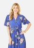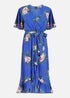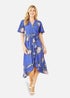 Mela Dark Blue Floral Dip Hem Wrap Midi Dress