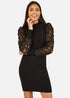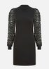 Mela Fitted Knitted Dress With Mesh Sleeve In Black