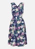 Mela Floral Wrap Sleeveless Skater Dress In Navy