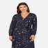 Learn moreBe the star of any event over the festive season. In an all over starburst print that shimmer in gold foil on a gorgeous navy backdrop, this midi dress features a tie belt at the waist, flowy long sleeves and a V neckline. Wear with gold accessories to complete the look.