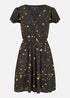 Learn moreChannel your inner celestial in this divine skater dress from Mela. With an all over star and moon print in foiled gold on a midnight Black backdrop, you'll be shining at any invite this season. The simple skater shape with wrap over neckline is mega flattering and easy to wear. Style with gold accessories to finish the look.