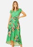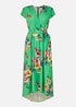 Mela Green Bright Floral Dip Hem Wrap Midi Dress