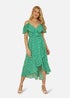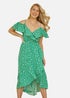 Mela Green Ditsy Print Bardot Midi Dress With Dip Hem