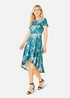 A modern twist on an elegant classic, the Mela Green Floral Bardot Dipped Hem Dress is calling to be worn for all the special occasions this season. The fold over Bardot neckline is flattering and the shape overall is enhanced by the cinched in bodice and skater style skirt that has a dipped back. The all over floral print adds a pretty finish, style with simple metallic heels and clutch.