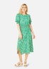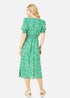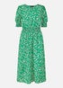 Learn moreFeatures a flattering elasticated ruched waist and cuffed, 1/4 length sleeves, this Mela Green Floral Shirred Waist Midi Dress is bang on trend and would make a super cute addition to any wardrobe. The hem split adds a youthful feel to this everyday dress that can be worn over and over again. Perfect matched with strappy platforms and a denim jacket.
