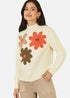 Mela Ivory Knitted High Neck Jumper With Applique Flowers