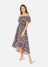 Learn moreShow those shoulders girl. This floral bardot dress features a ruffled top, dipped hen and figure hugging cinched waist.
