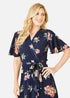 Mela Navy Floral Dip Hem Wrap Midi Dress