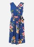 Mela Navy Floral Wrap Over Midi Skater Dress