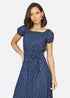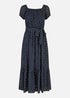 Mela Navy Foil Print Bardot Midi Dress