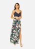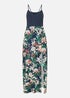 A perfect fit for sunny holidays and daytime dressing in the warmer months. This Mela maxi dress in lightweight jersey give the illusion of a skirt and top combo without the fuss, The skirt has a bold tropical leaf print and the top is a plain navy Cami style, style casually with chunky sandals and a denim jacket. The hemline had a side split to offer movement and sultry appeal.