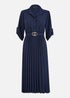 Mela Navy Pleated Skirt Midi Belted Shirt Dress