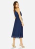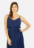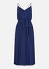 Learn moreThis dress from Mela has a luxe feel for events this season. The midi length skirt is enhanced with pleats in a rich shade of navy. The strappy v neckline balances the shape and the tie waist highlights the silhouette. Add heels and a clutch for simple elegance.