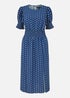 Mela Navy Spot Print Shirred Waist Midi Dress